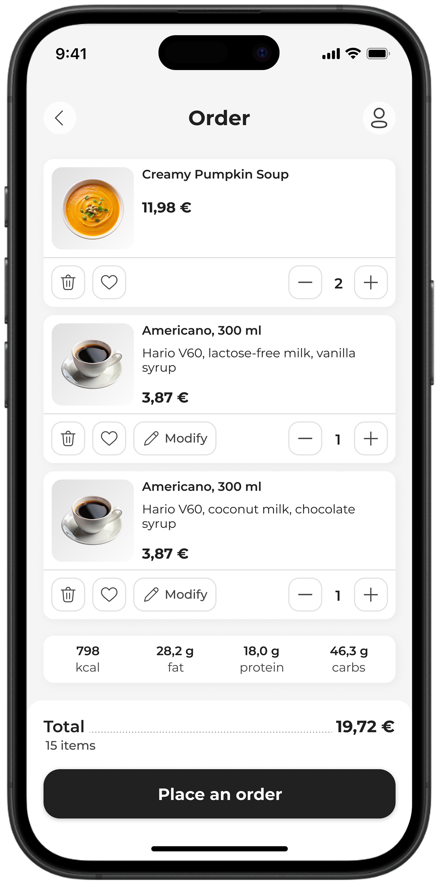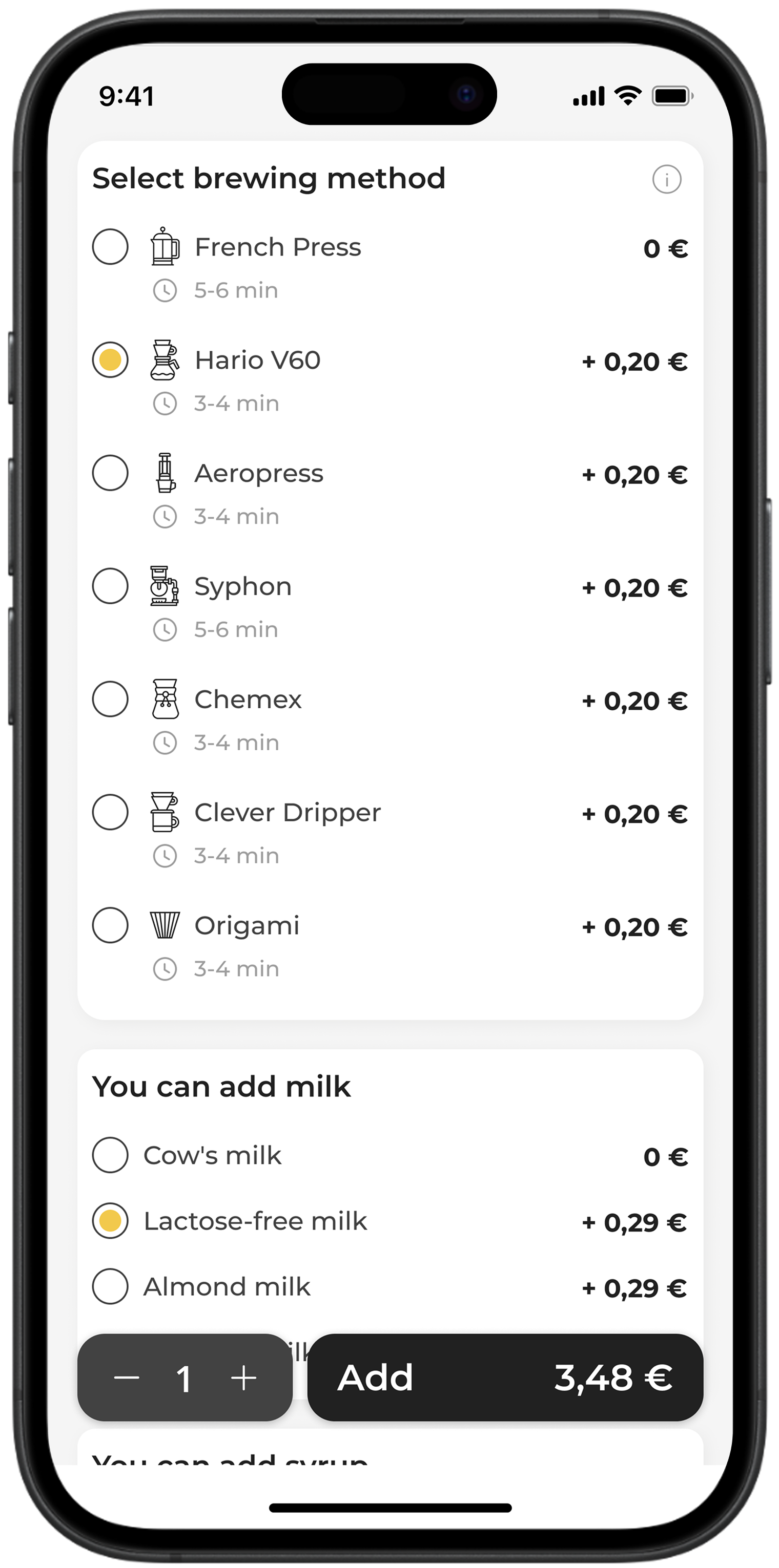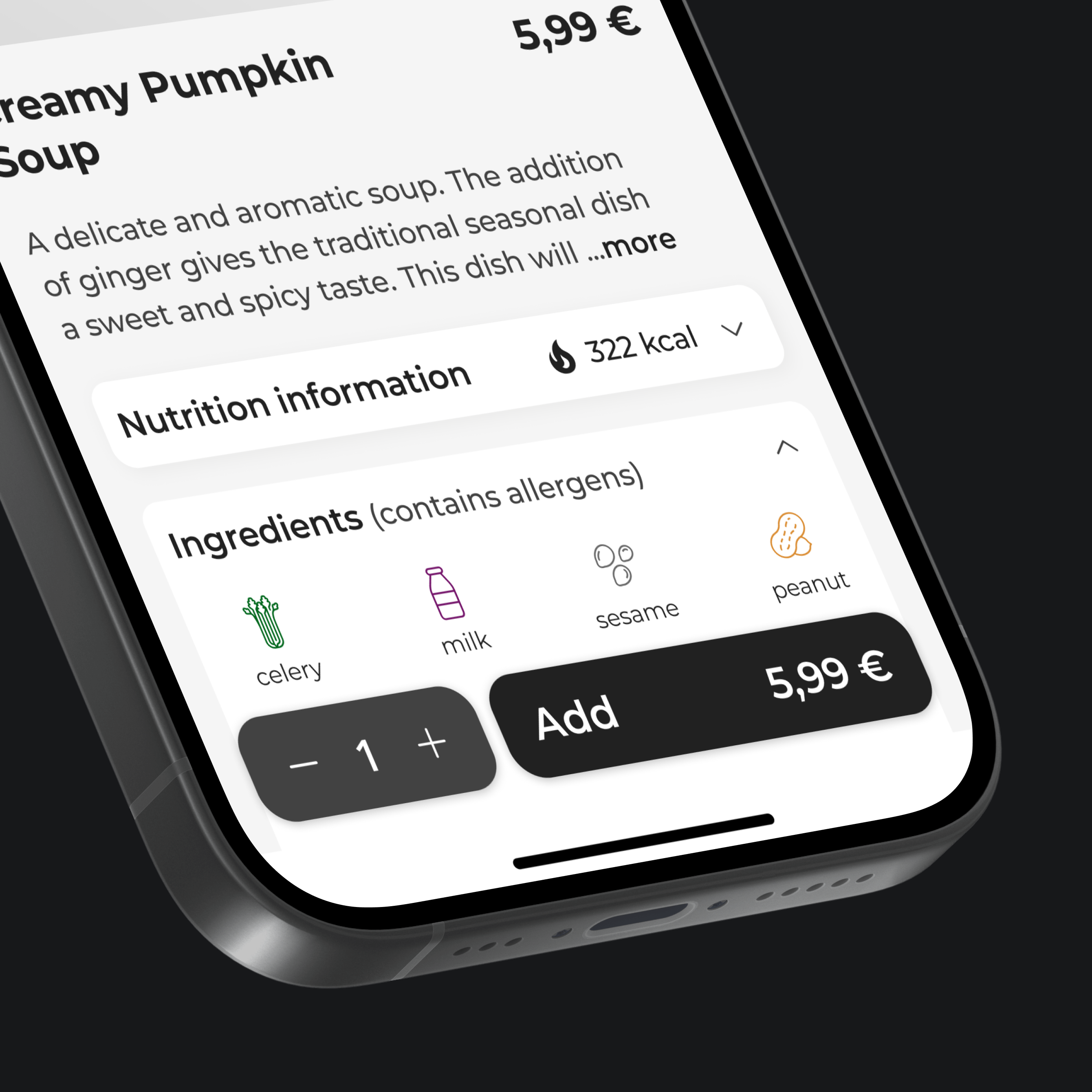 Next, the menu will be expanded with online payment and tipping features, integrated directly with the client’s existing service